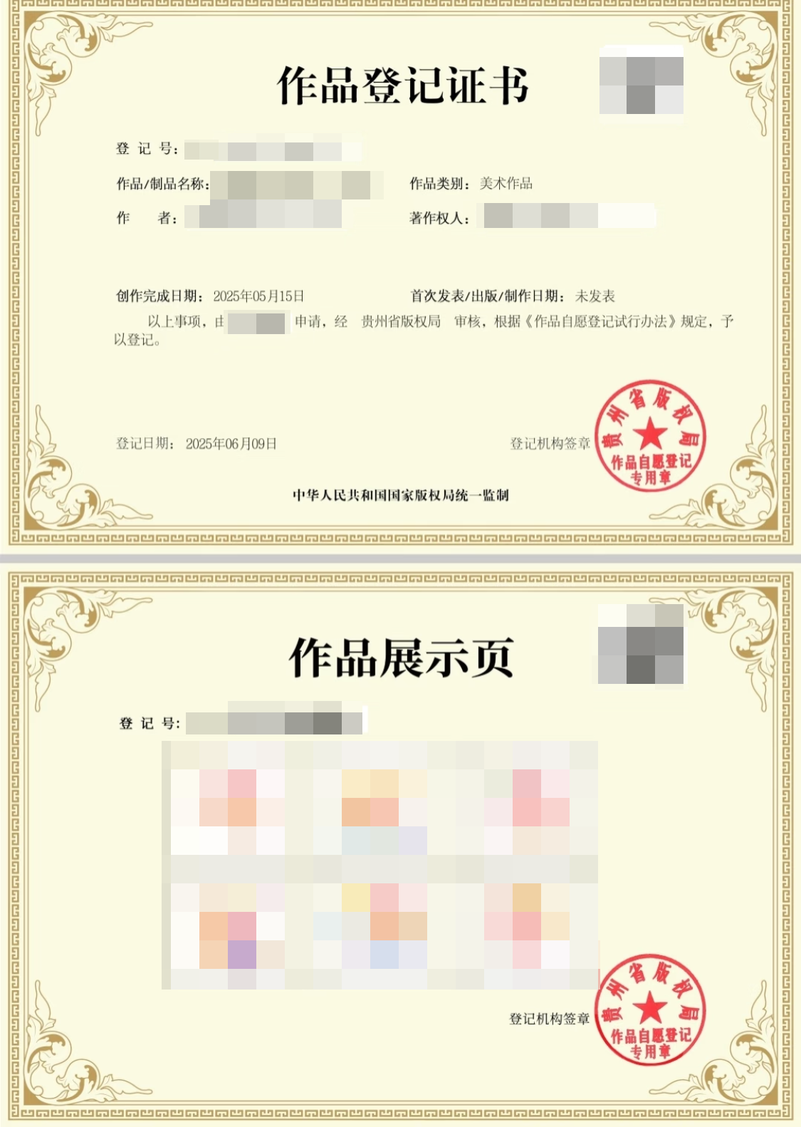 如果你的成果是内容IP、艺术创作类作品,比如企业吉祥物、品牌插画、原创海报、书法绘画、UI界面设计等,优先进行版权登记。一方面版权自动生效,创作完成即可获得保护,无需等待审查;另一方面版权登记手续简便,线上即可办理,能快速拿到权属证明,有效防止他人盗图、抄袭用于宣传、制作周边等行为。